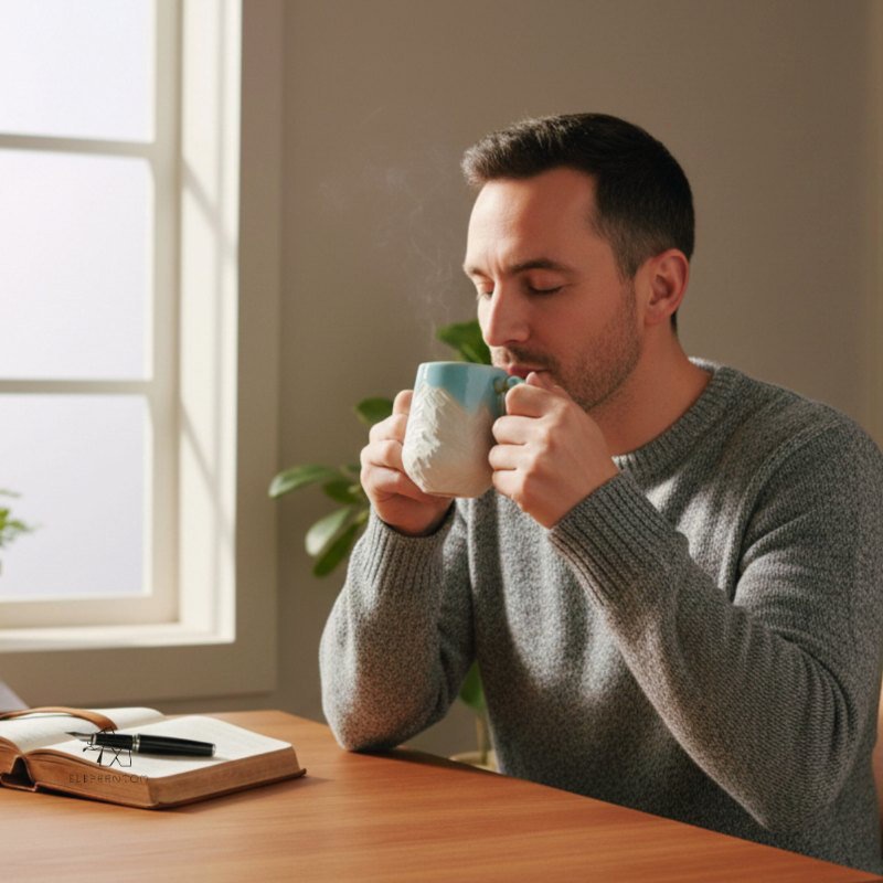 The handle of this mug is large enough to be easily handled. Enjoy a hot cup of coffee while feeling the reliefs of this handmade creation.