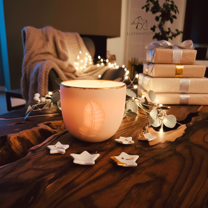 • Softly diffused light with Elephantom Design's handmade porcelain candle jars •