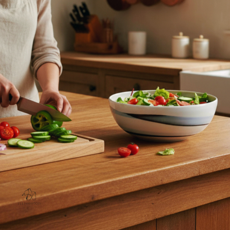 Ajoutez une touche d'originalité et de raffinement à votre table avec ce saladier unique noir et blanc.