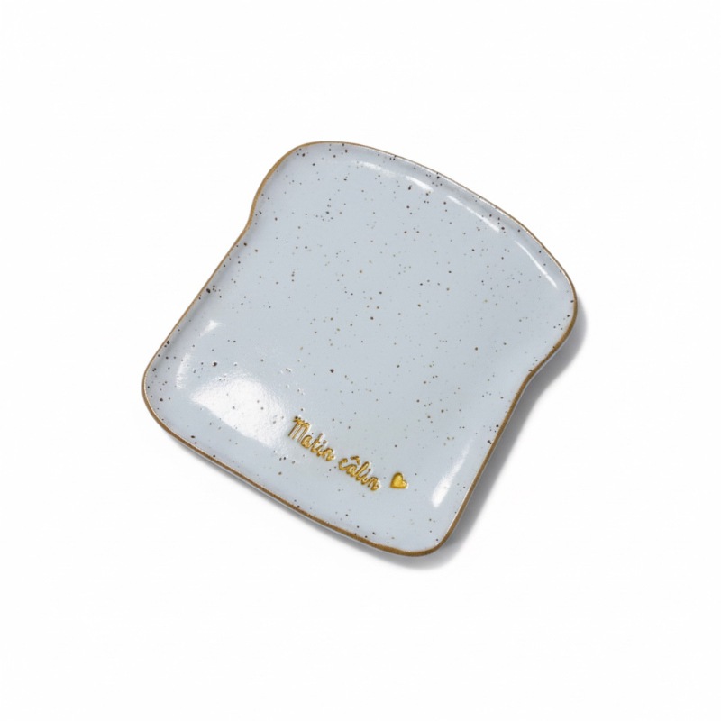 Duo d’assiettes tartine - “Matin Câlin” & “Je t’aime à croquer” - Grès pyrité - Fait main • Grains de folie Collection Grains de Folie
