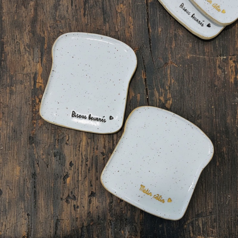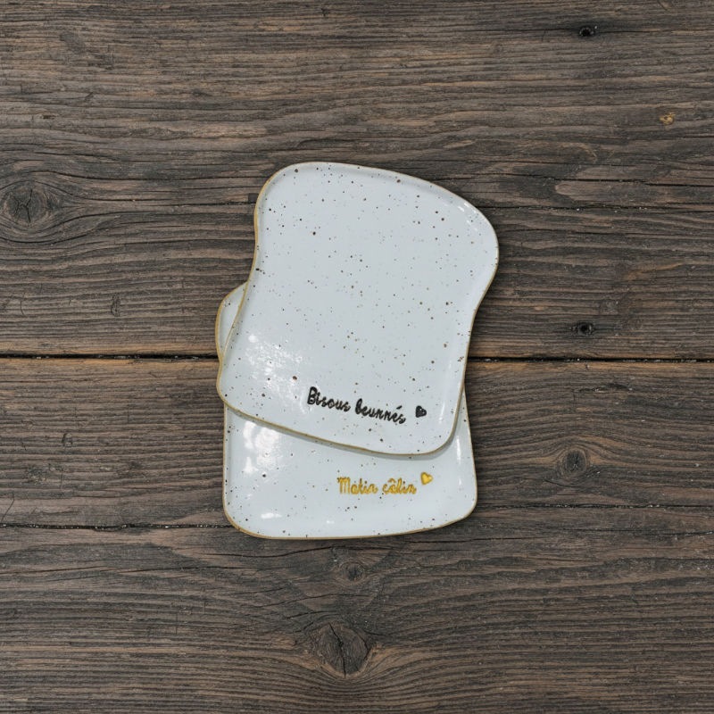 Duo d’assiettes tartine - “Matin Câlin” & “Bisous Beurrés” - Grès pyrité - Fait main • Grains de folie Collection Grains de Folie
